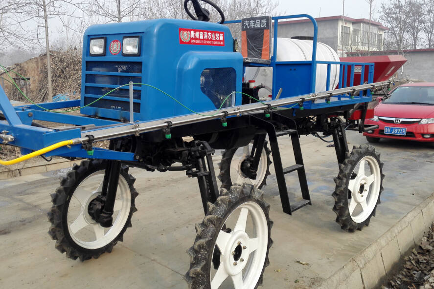 自走式,名牌发动机,四轮驱动,四轮转向。轮距1500mm,离地间隙1200MM,配备名牌隔膜泵,三段电动折叠推杆,喷幅9-12米, 适合各种地形