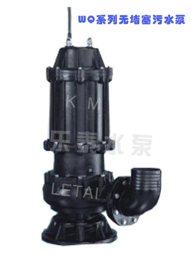 WQ、WQD系列污水潜水电泵由水泵、密封和电动机三部份组成,单相或三相异步电动机位于电泵上部。电泵转轴经过硬镀铬处理,电机采用B级绝缘,11KW及以下配有热保护器,15KW及以上配有智能保护开关。