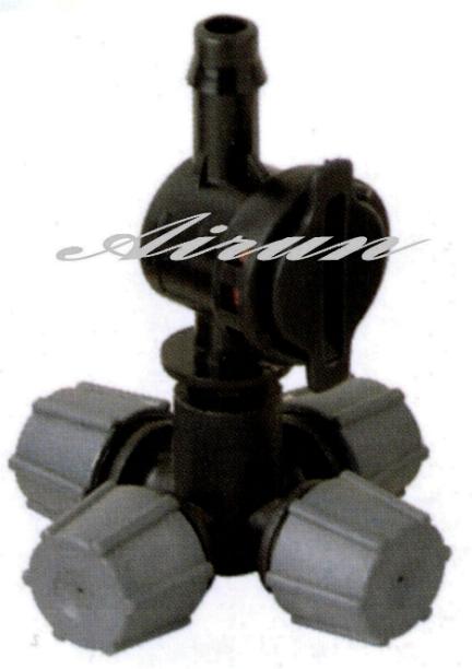设计采用一种涡流喷嘴,提供涡流喷雾流,最大限度地降低堵塞的可能性。分解式构造,便于维修。可选用四个或单出口。垂直安装于适当位置,用于温室大棚中扦插育苗。雾化效果良好,配合整体式膜片防滴阀,可有效杜绝停