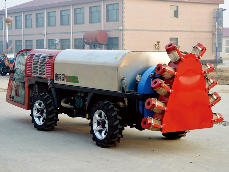 多功能四轮田园管理机,车身短小,马力足,是丘陵地区、果树植保、松土、施肥、收果运输等理 想农机,在葡萄园区更是灵巧好用,达到了一机多用,