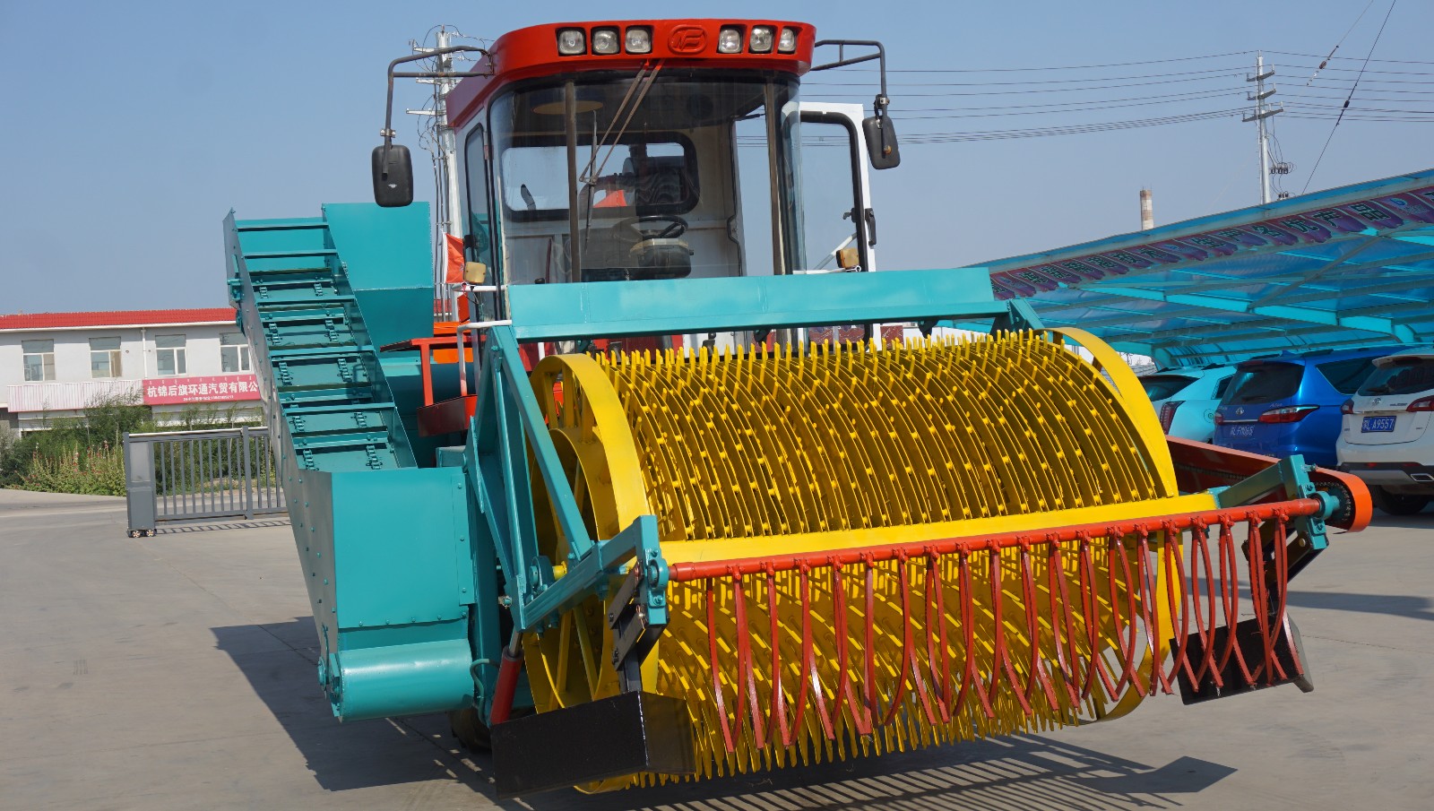 取料割头;上料方式:刮板快速上料,链条输送;行走和转向驱动方式:液压驱动行走和转向;卸料高度:抛卸高料3.3米高以上;最大取料高度:取料角钢或滚筒上端距离地面≥4米,最低取料高度:取料角钢或滚筒下端距