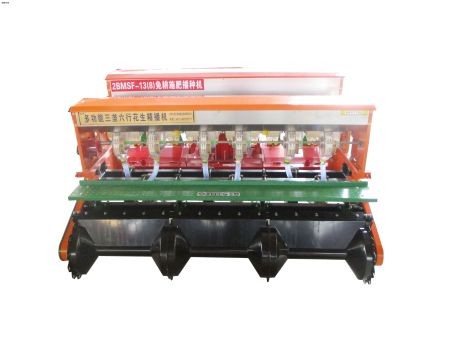 该机可条播小麦、大豆、玉米、旱稻,花生起垄等,一机多用,可一次性完成旋耕、施肥、播种、起垄、振压,作业质量好,效率高。另外,公司的所有的播种机可与任何厂家的旋耕机配套使用,安装方便。