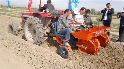 本机可以一次性完成开沟、施肥、合沟等工序,施肥箱体积大,施肥量调节容易、精度高,播肥轮动力由行走轮提供,简单快捷,容易维护,效率高。每天可施肥100亩,适用于枸杞、葡萄等果园地的施肥作业。