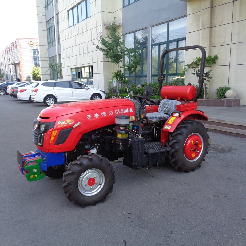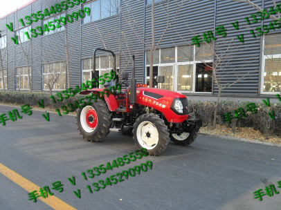 轮式拖拉机为农业一般用途四轮驱动型式的动力机械。采用无架式机架,无驾驶室,配套四缸、涡 轮增压