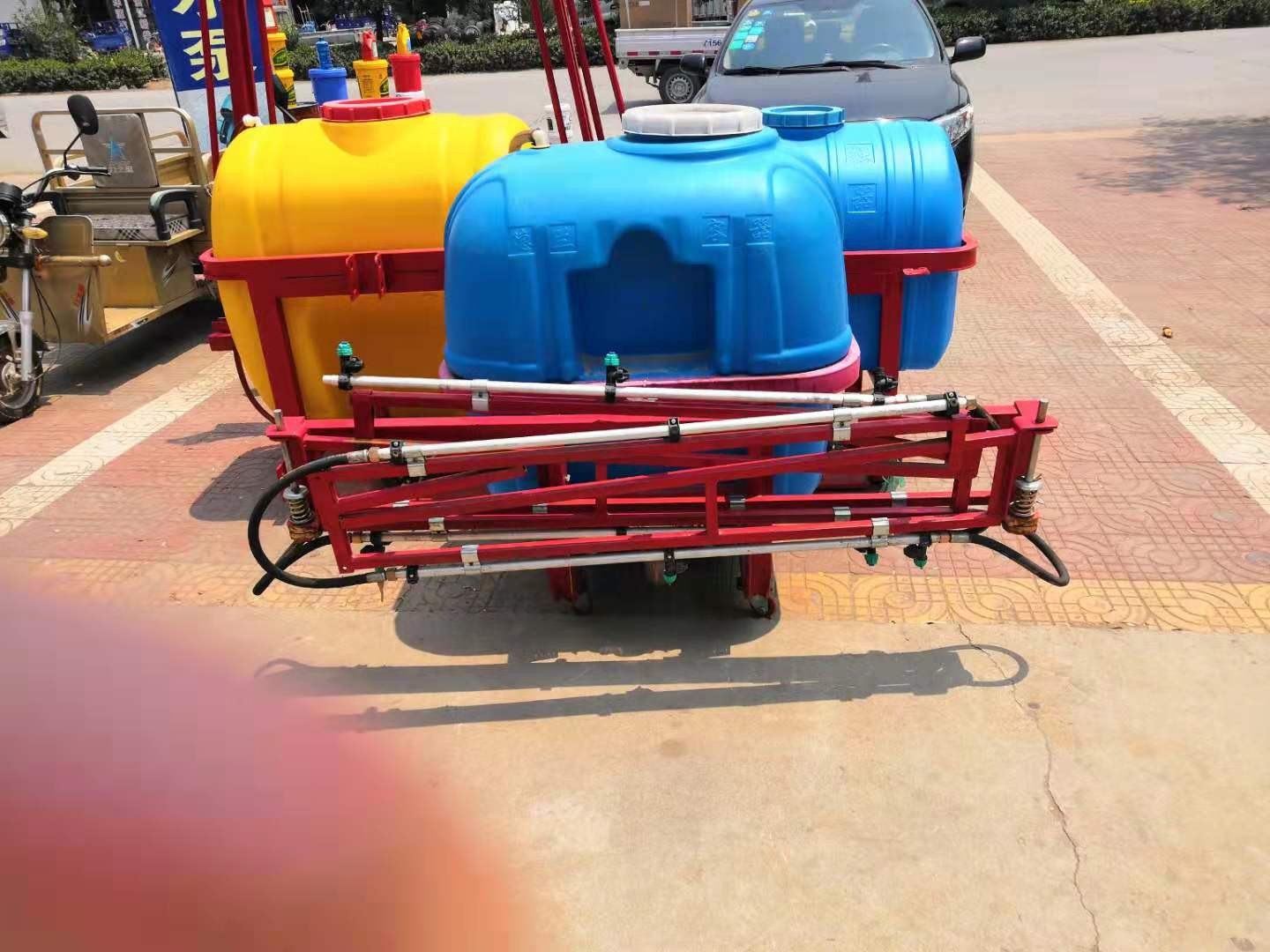 药液箱由机架固定承载、液泵位于药箱下方,喷臂固定于机架上,可以自由折叠,有手工、液压两种方式,喷臂可上下调整,吊杆喷臂可左右调整,喷幅可以人工控制。