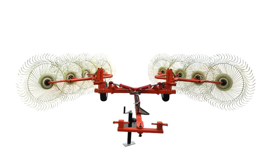 结构简单,无需传动系统,所搂草条平整而连续。尤其对不平坦地形有极强的适应能力。