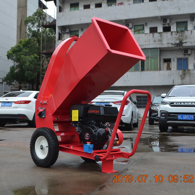 园林树枝粉碎机配备188F汽油机,机器可以切碎直径8cm以内树枝树叶、秸秆等等,切碎后的碎是0.5-3cm不等不规则的碎片。一个人可以拉动机器,汽油一般默认是手拉启动,也可以加配电动动发动机具体咨询客