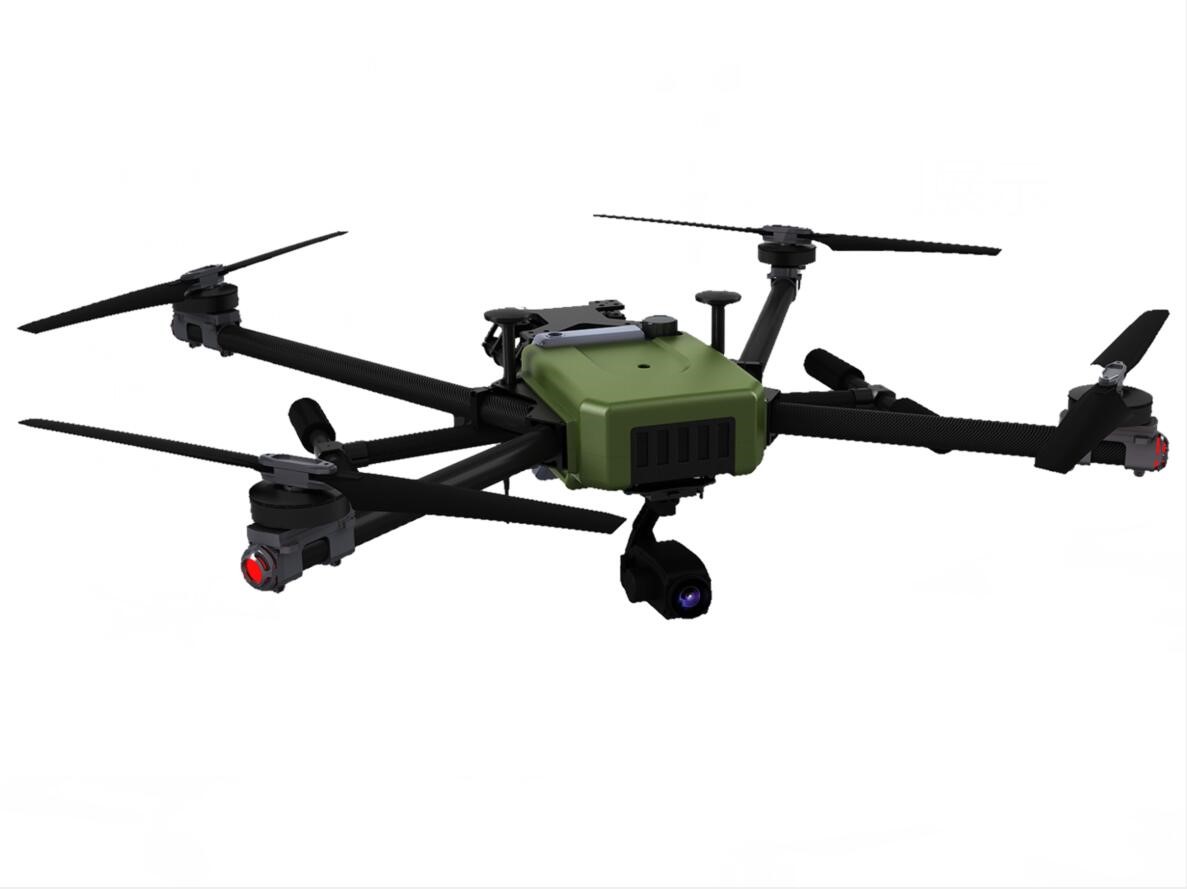 本产品采用油电混合动力,机身整体采用碳纤维材质,重量轻、坚固耐用,空载续航时间大于等于4小时,内部包含备用电池让飞行更加安全。