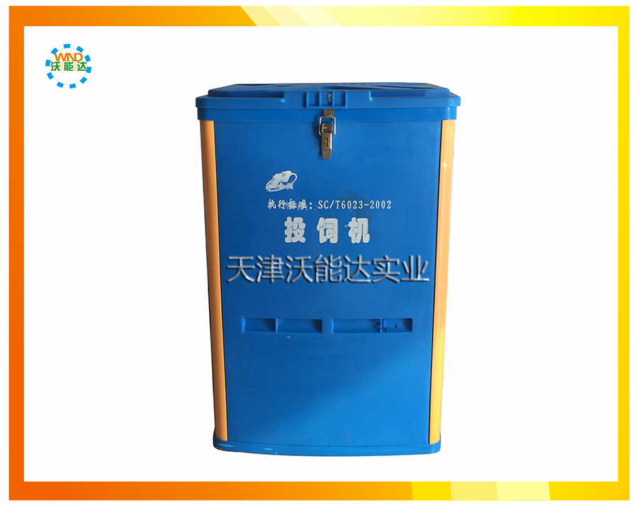 投料机工作时,通过振动分料机将饲料均匀的落进抛料盘,抛料盘在主电机的离心作用下,把饲料快速均匀的抛向渔塘。