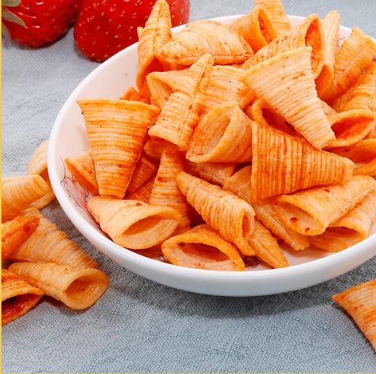 油炸三角片加工设备膨化三角状食品生产线简述:该生产线主要以玉米淀粉、大米粉为原料,经过膨化挤压后成为成型美观、膨化良好、方便休闲的食品。
