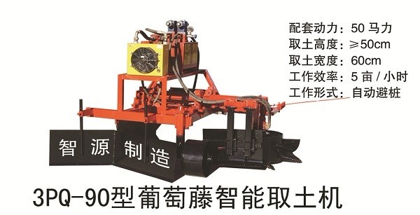 旋转取土盘的取土速度更快,阻力更小,下端安装胶皮保护葡萄藤不被损坏,除土盘高度可调,适用于各种高度的葡萄藤取土