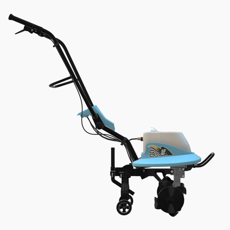 从机体中取出蓄电池,可以用家用插座进行充电。调节钻入土中的深度,提高稳定性和直行性。双轮支撑较稳定,又便于将其移动至菜园