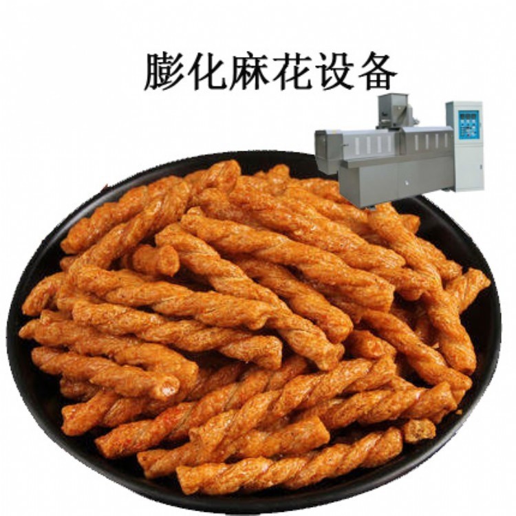 希朗粗粮锅巴小麻花生产线以大米、玉米、小麦、燕麦、面粉等五谷杂粮为原料。经双螺杆膨化机挤压膨化并从不同的模具挤出,旋切成形,再经烘烤(或油炸)调味即可得到口感酥脆、外形逼真地各种风味的休闲小食品。