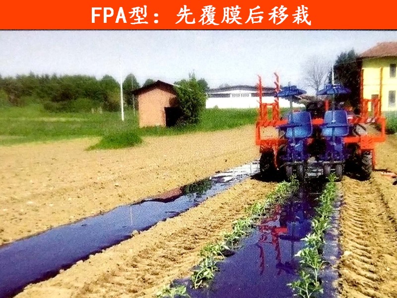 转轮式人工投苗;最高移栽速度:2000株/行/小时;行距:30~100厘米;最小株距:20厘米,连续可调;最大作业行数:7;拖拉机功率范围(马力):30~80。