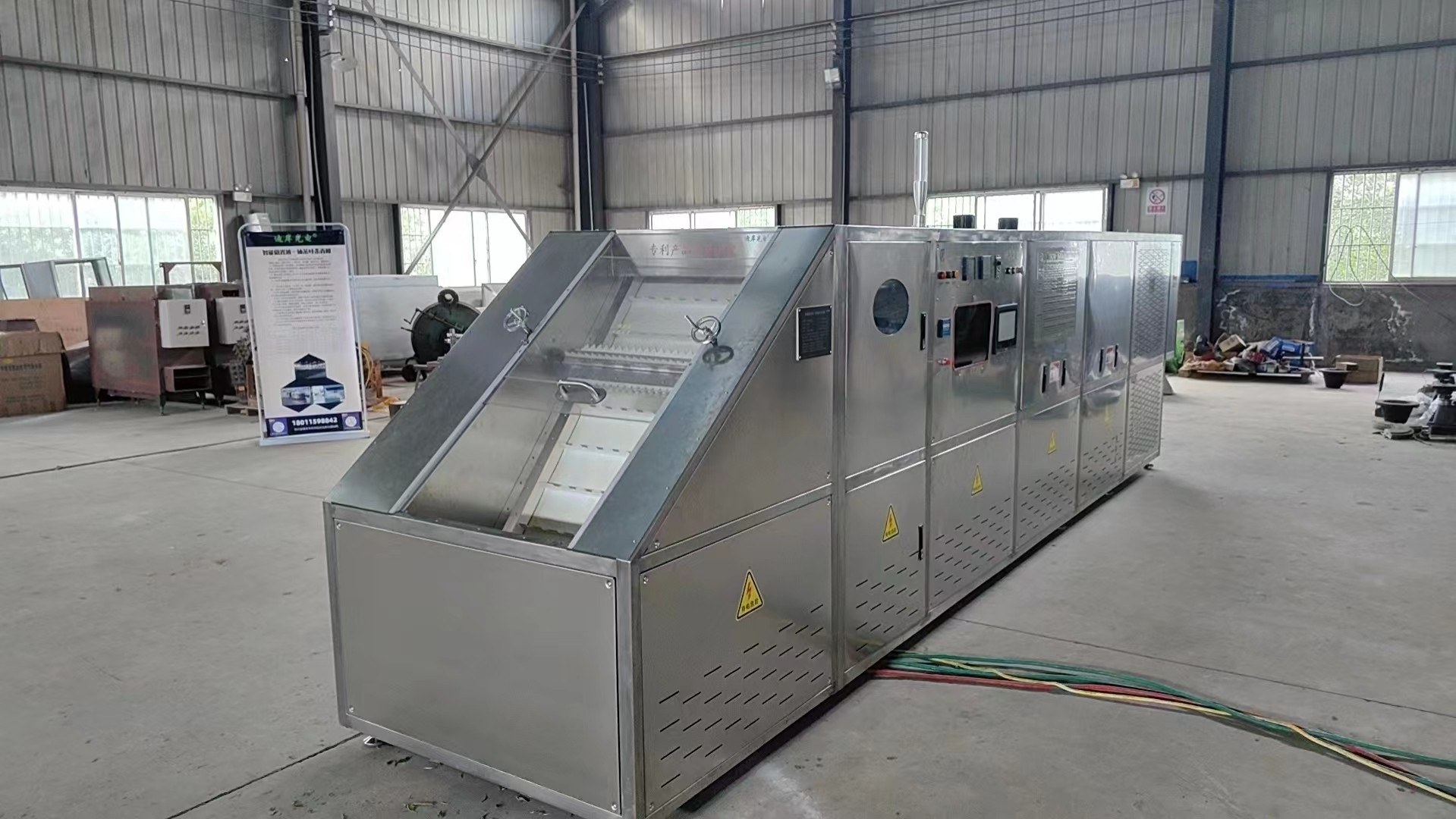 利用超高频电磁波促进茶分子高速运动破坏和钝化鲜茶叶中氧化酶活性,抑制鲜叶中茶多酚等酶促氧化,蒸发鲜叶部分水分,散除青草味,使茶叶变软,便于揉捻成型,同时光波远红外作用于茶分子,促进茶叶良好香气的形成