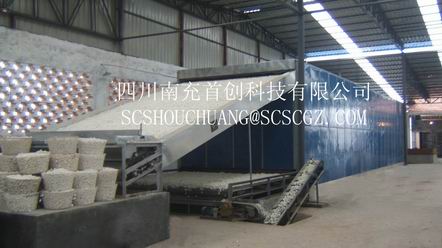 烘室外型尺寸:14000mm×4500mm×2200mm;结构质量:7000kg;结构型式:网带式; 配套动力:7.05kW;生产率:2000kg/d(鲜茧至适干茧);干燥均匀度高