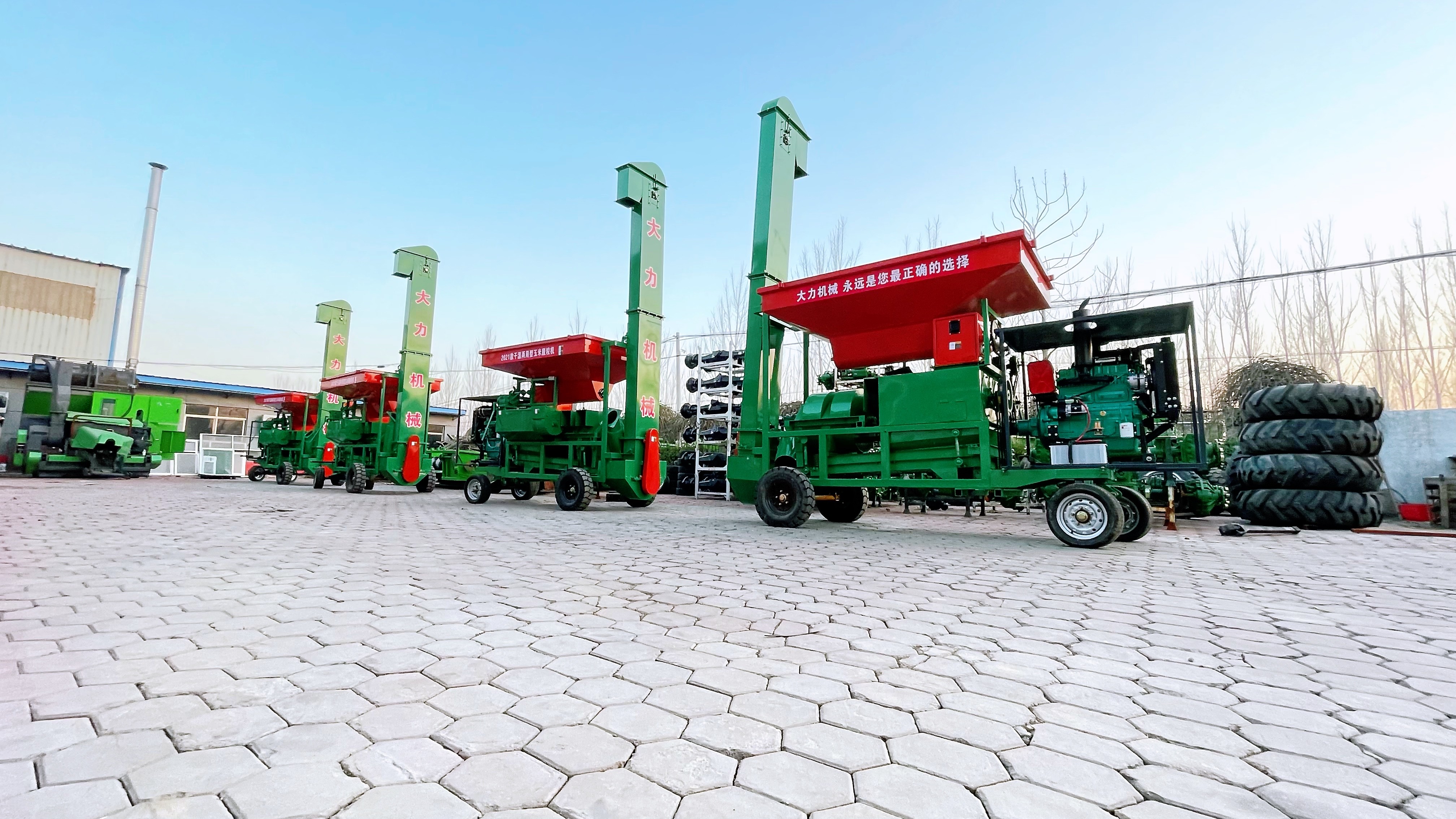 1.五套除尘排杂。 2.可移动,便于自用或者做加工 3.可选配柴油机或者电机 4.干湿两用。 5.可放倒式提升机。