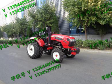 轮式拖拉机为农业一般用途四轮驱动型式的动力机械。采用无架式机架,无驾驶室,配套四缸、涡 轮增压