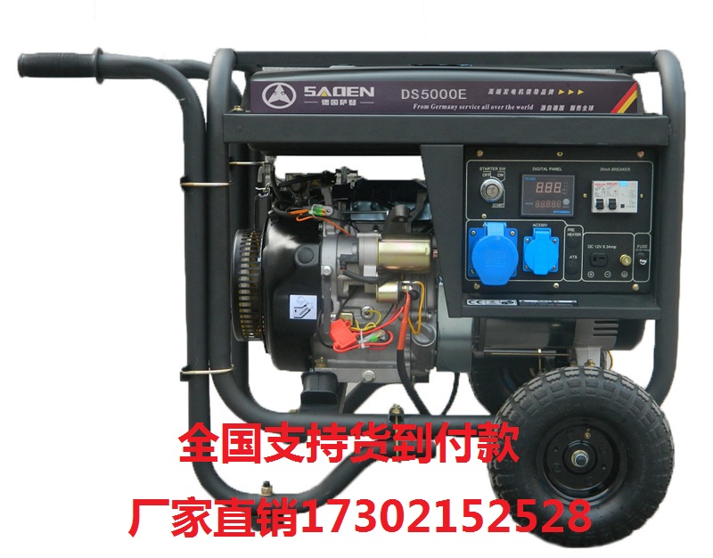 萨登5kw单相汽油发电机额定功率5kw,额定转速3600rpm,额定电压稳定220v,输出电压12v,24A电流,25升油箱容量,1.1升机油容量