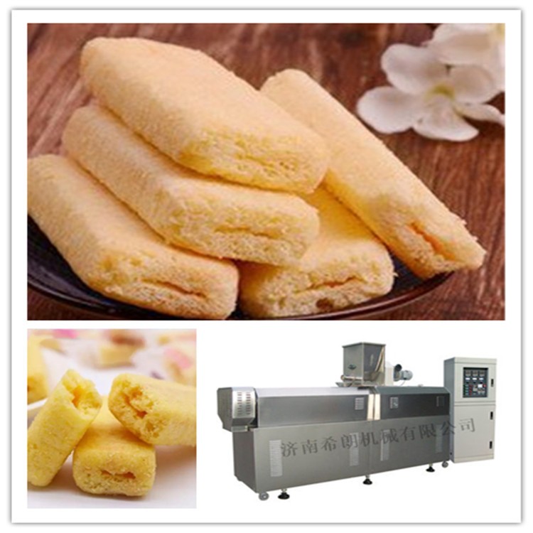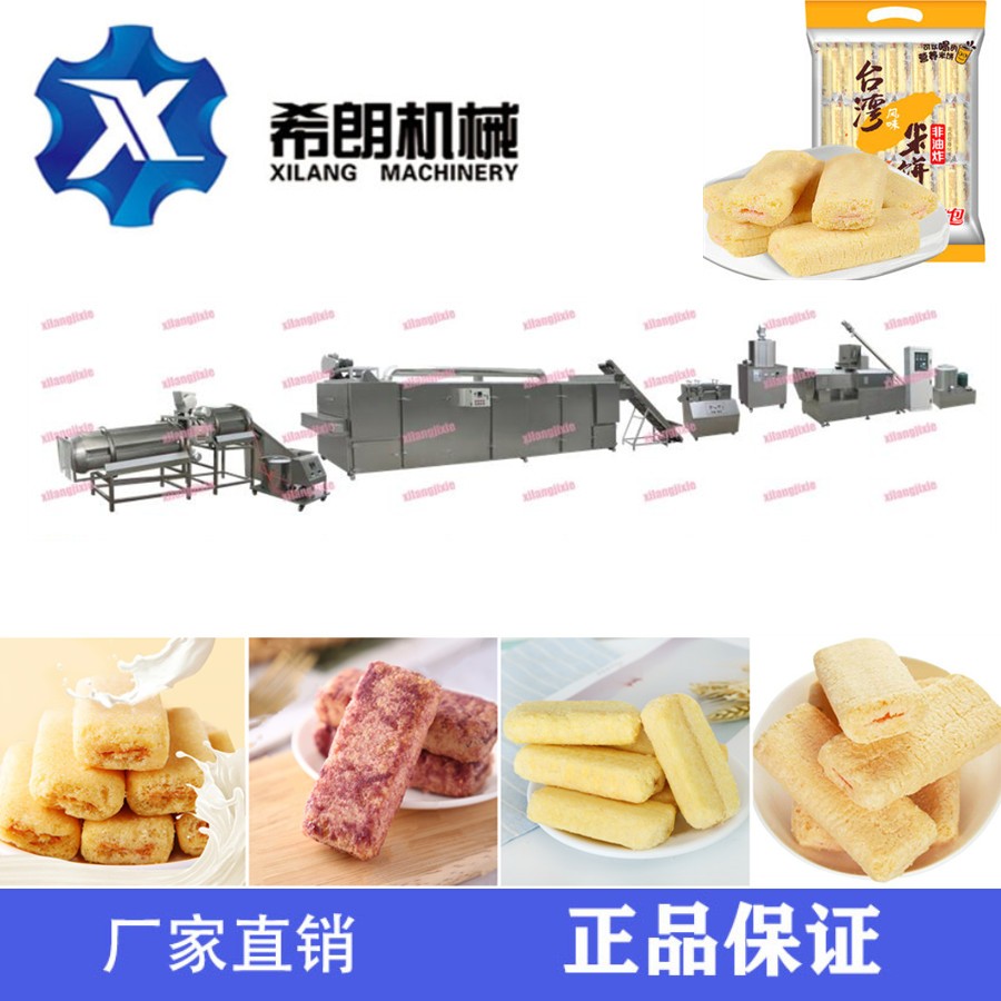 该生产线配置可生产台湾米饼、夹芯管、夹心米果、麦烧、麦香鸡味块、营养早餐、玉米片等产品。经膨化后的食品具有口感酥脆、易消化、香味独特、携带方便,是消费者理想的休闲食品。