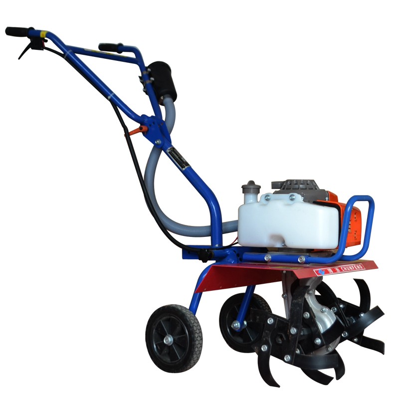 根据丘陵、山区、地块小、高差大、又无耕道而设计的。通用机型,前轮驱动,使操作更加轻松。适合沙质地、经济作物种植的除草、微耕和松土。