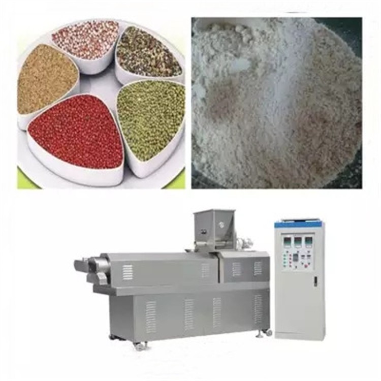 谷物杂粮营养粉的主要原理是挤压,因此,粮食膨化粉又可称为粮食挤压膨化粉。即将五谷杂粮类的粮食原料置于挤压膨化机的高温高压状态下,然后突然释放至常温常压,使物料内部结构和性质发生变化的过程。