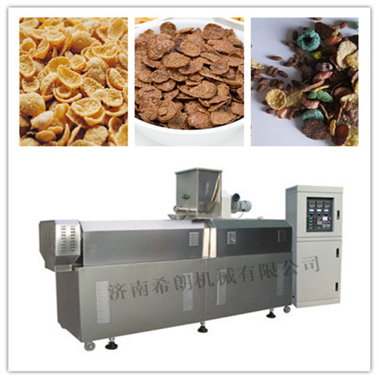 玉米片生产设备该生产线可采用燕麦粉、小麦粉、玉米粉、荞麦粉等各种五谷杂粮为原料,加入各种维生素、蛋白质和矿物质进行处理,在挤压机中挤压、熟化、成形后重新生成新的营养餐,其食用方法更简单方便,营养