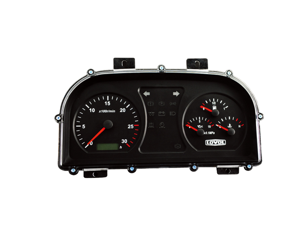 能强大,工作可靠,安装方便,美观大方。可显示:机油压力、燃油量、水箱温度、发动机工作时间,并带有远光、近光、示廓灯、蓄电池充电状态指示、油压报警、油量、水温、空气滤清器堵塞、离合器故障状况声光报警。
