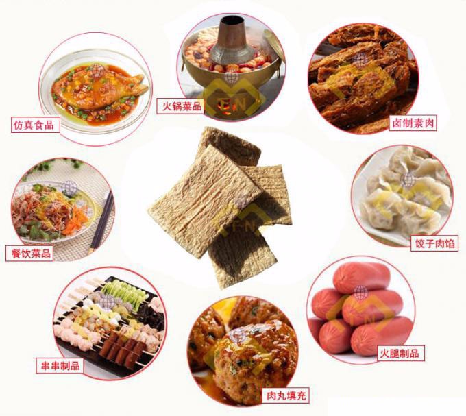 生产豆类素肉食品 机械以低温豆粕、花生粕为主要原料,经粉磨、搅拌、调质、高温、高压、高剪切,将球形蛋白质分子打开成链状并重新组织化,形成如肉状纤维结构的如瘦肉状且有咀嚼感的新型食品;其产品营养价值高,