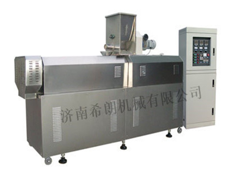 济南希朗公司研发的新一代休闲食品生产线是膨化食品夹心米果生产设备,从原料配制、挤压膨化、夹芯、成型、切断、喷涂、调料到出成品一次完成,自动化程度很高
