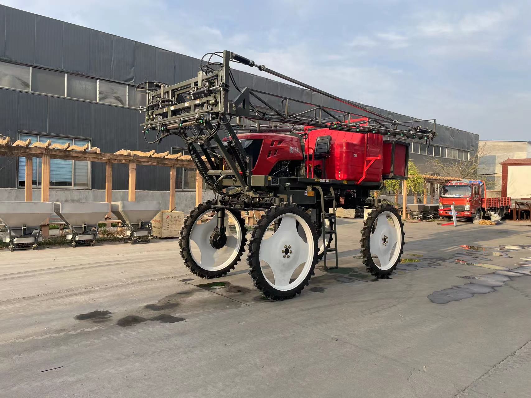 一、喷杆喷雾机主要用途 自走式喷杆喷雾机配有充气、实心高花橡胶轮胎,可广泛应用于大豆、小麦、水稻等农作物及中草药、牧草、园林花卉等植物大面积的播前土壤处理、苗期灭草及病虫害的防治等。