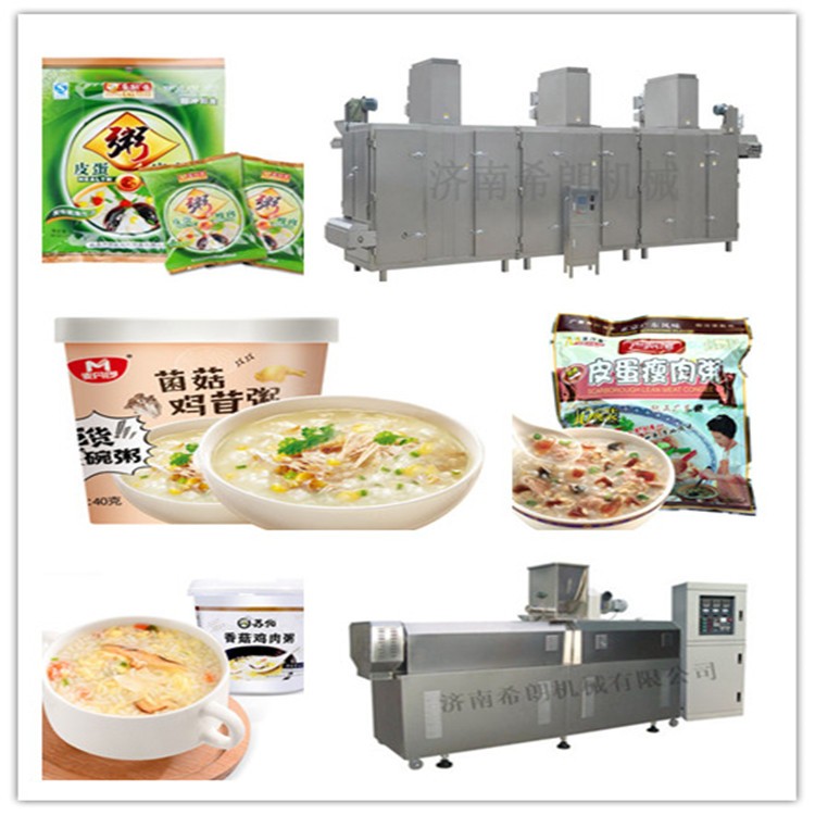 希朗机械公司全新开发的粥品生产线具有操作简便、自动化程度高、连续流水线生产、人工省、低噪音等特点。全套设备选用食品级全不锈钢制造,生产过程无需锅炉