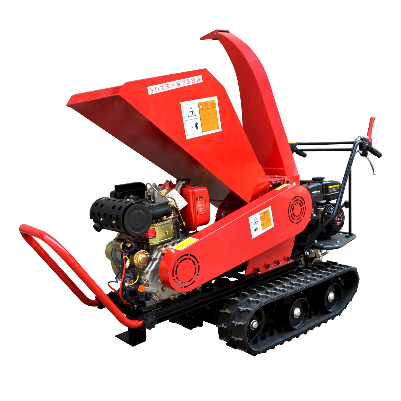 履带式树枝粉碎机望文生义。是机器装配履带式行走系统,人们在使用机器的时候,以操作机器自己移动,不需人工推拉。
