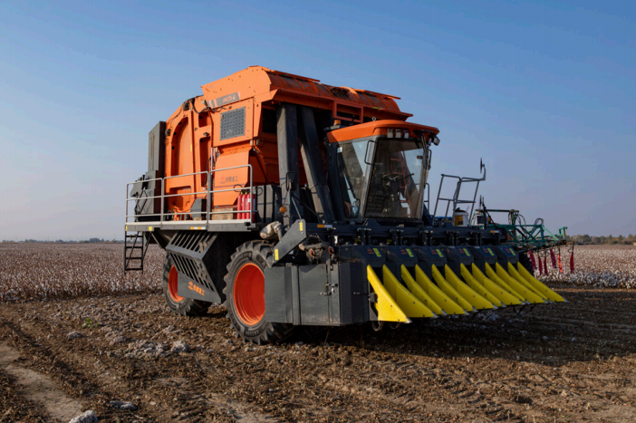 铁建重工采棉打包机相比传统采棉机,可大幅节约停车往返卸棉时间,采收的棉花被包膜缠绕,不易受外界污染,成型的棉包存储、运输更加便捷。