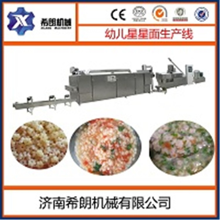 希朗公司在吸收国外先进技术的基础上研制、开发并生产的食品加工设备,其技术性能和质量指标均达到国际同类设备的先进水平。该生产线从配料、挤压膨化、烘烤、喷涂直至成品可一次性完成。