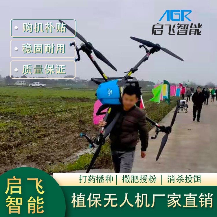靠谱飞防,源于金刚铁骨,启飞智能机架空间大,可发挥空间强,可进行各种改装应用,36*40mm插拔机臂免校准,配合对应的动力装置,可搭载22升、16升、25升药箱,亦可更换播撒机,一机多用。