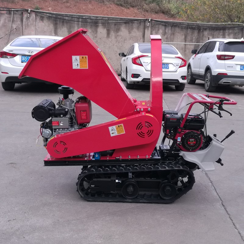 履带式树枝粉碎机顾名思义。是机器配备履带式行走系统,人们机器的时候,以操作机器自己移动,不需人工推拉。