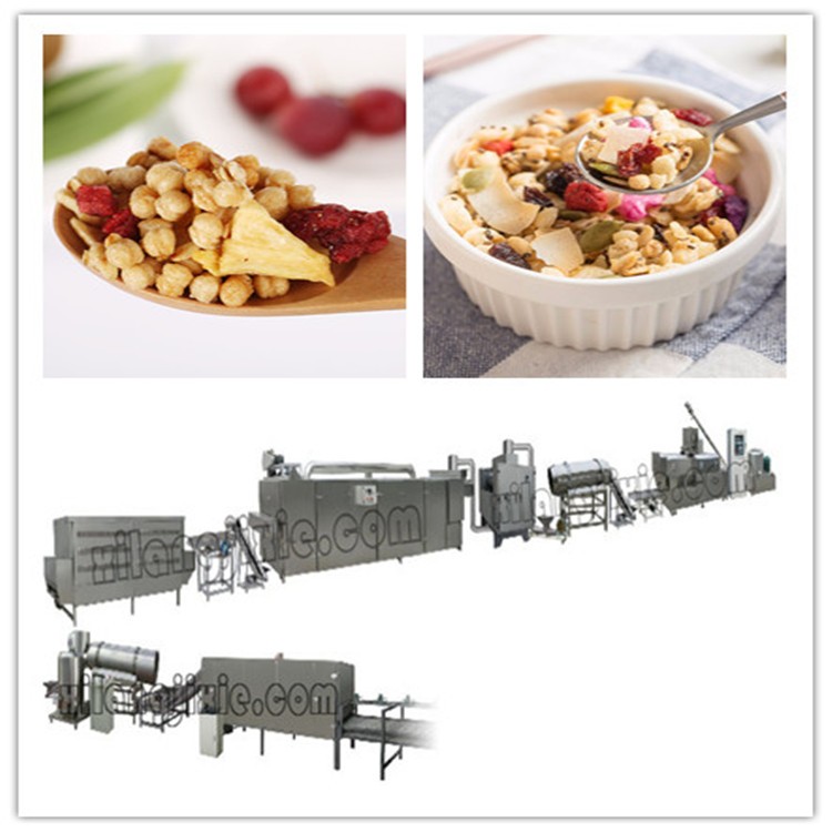 希朗水果燕麦脆食品以谷物为原料,经挤压,造粒,压片,干燥,焙烤,涂衣, 烘干,冷却。也可经一次膨化加工成圈状,颗粒状,片状等产品表面涂层糖稀烘干后即可。
