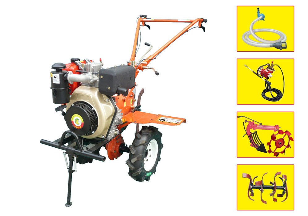 配有186型发动机、扶手架、换档杆、变速箱、调整杆、档泥板、旋耕刀、行走箱;1、配套动力:186型柴油机;2、额定功率:6.3kw;3、标定转速:3600r/min;4、生产效率:≥0.95亩/小时;