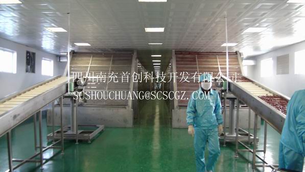 独特的送风、排湿系统在烘室内从上到下形成不同温区。红枣在烘室内从上到下的水平段落翻转、移动过程中,依次经过预热、等速蒸发和减速蒸发三个阶段;湿度可自动检测和控制。