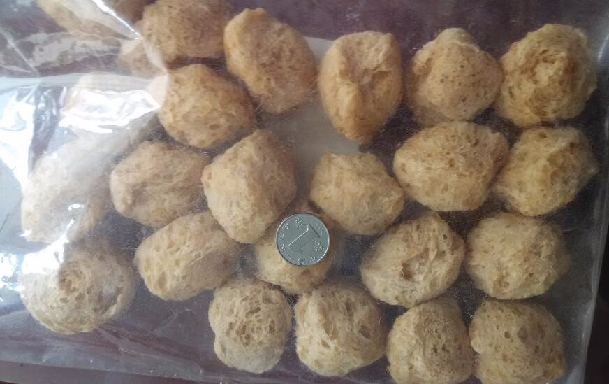 以低温豆粕、花生粕为主要原料,经粉磨、搅拌、调质、高温、高压、高剪切,将球形蛋白质分子打开成链状并重新组织化,形成如肉状纤维结构的如瘦肉状且有咀嚼感的新型食品;其产品营养价值高,具有肉的状态和口感,不