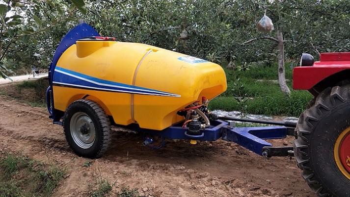 牵引式果园喷雾机由拖拉机作为动力,通过拖拉机的后输出轴带动风送式果园喷雾机进行作业。