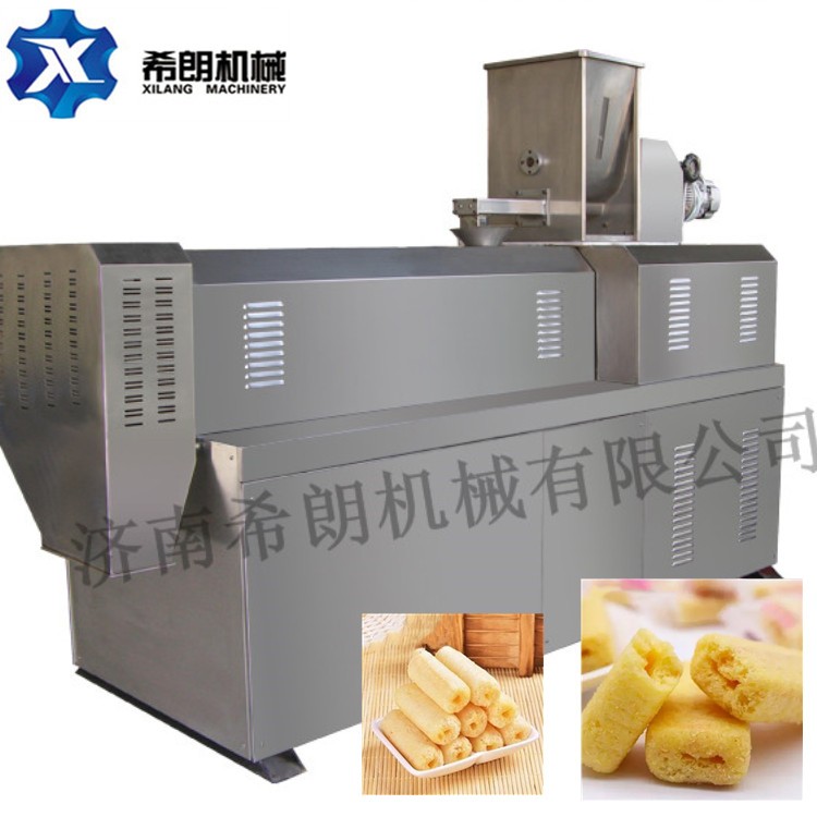 济南希朗机械自熟多功能双螺杆膨化机适用于各种休闲膨化小食品,更换模具调整配方即可生产不同类型的休闲膨化小食品,一机多用,高效价廉,操作方便。