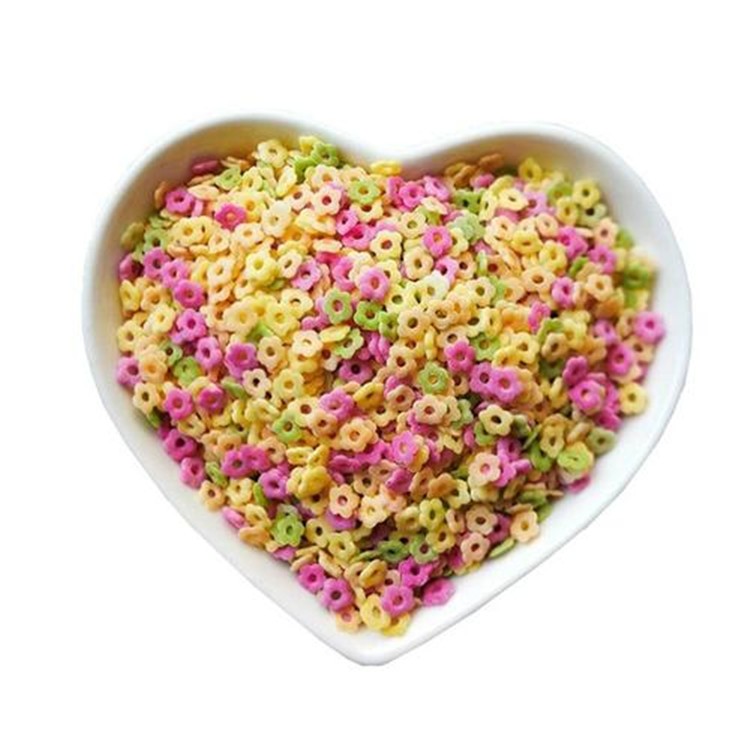 希朗水果燕麦脆食品以谷物为原料,经挤压,造粒,压片,干燥,焙烤,涂衣, 烘干,冷却。也可经一次膨化加工成圈状,颗粒状,片状等产品表面涂层糖稀烘干后即可。产品可兑入酸奶,热咖啡,热牛奶后即可食用,也可做