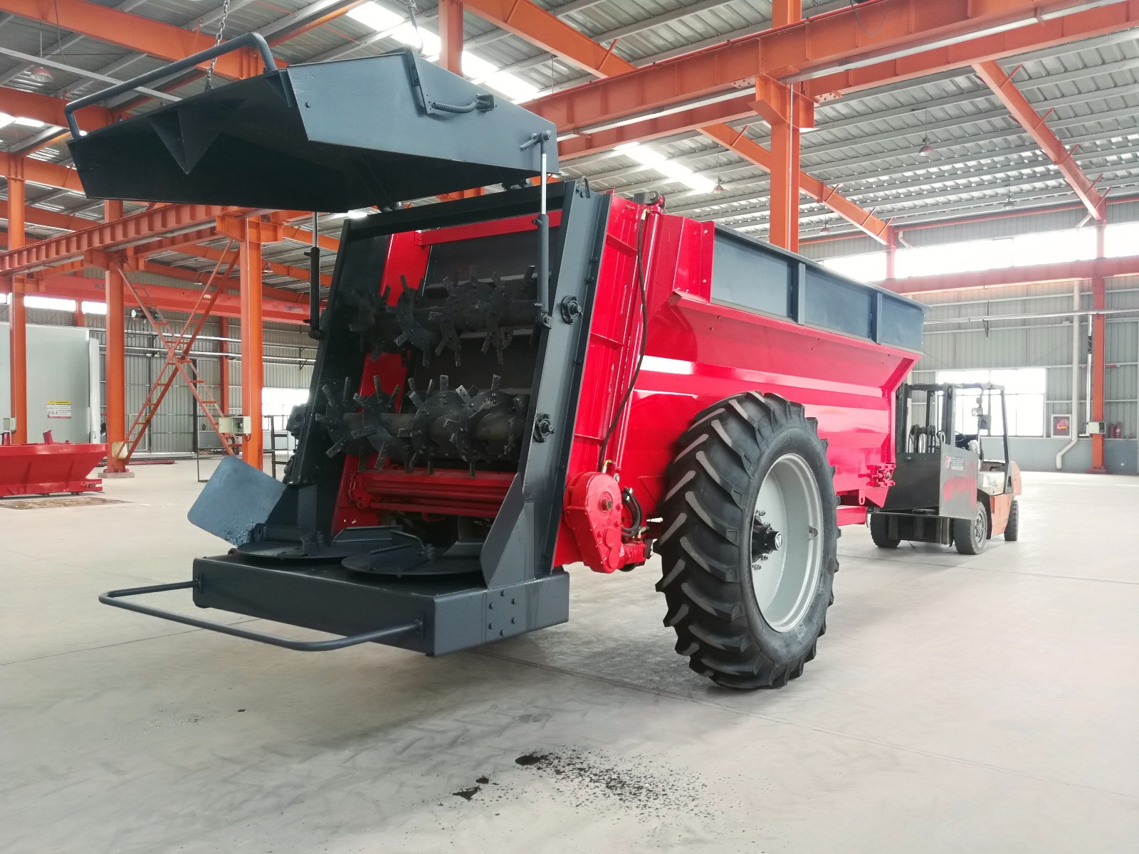 变速箱与传动箱均为原装进口,输送使用高强度矿用圆环链,更耐用。 可实现12米-16米的撒布宽度,可撒各种粪肥、有机肥、石灰、酒糟。即使含水量80%的粪肥与污泥,也能够高效撒布。