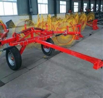 主要由机架、左右支撑、拉伸部件、左右摇臂、指盘架、指盘等部件组成。可搂集所有秸杆、牧草、地膜及其它作物