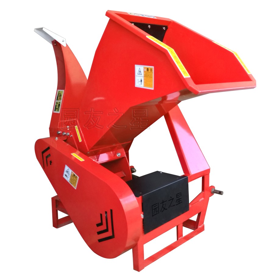 用拖拉机来挂载移动树枝粉碎机,机器悬挂于拖拉机后面,采用拖拉机动力输出轴为粉碎机传动动力。拖拉机为16-45马力并且带有动力输出装置的农用拖拉机即可。