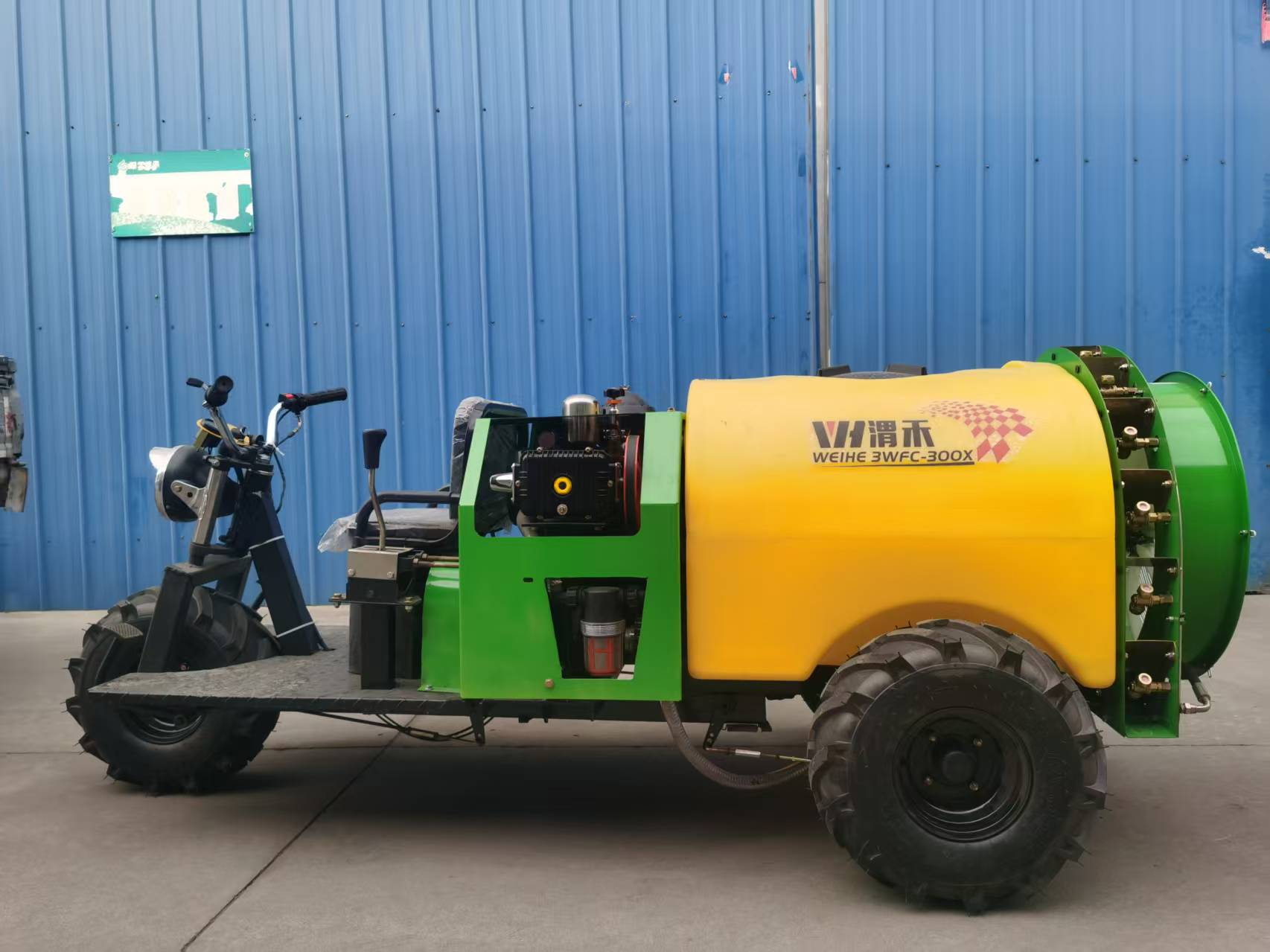 300升药箱 常发、常工195柴油机 有高低档,风扇药泵启停 60三柱塞水泵 12个单高压喷头