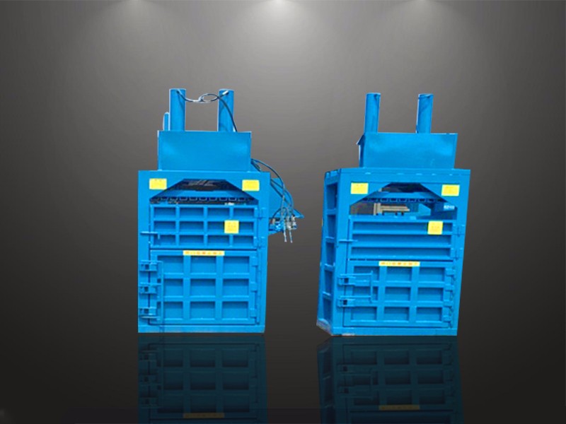 液压打包机包括支架,支架带有底板和前后侧挡板,支架上安装有千斤顶,千斤顶带有活塞杆,活塞杆右端连接有竖直的推料板