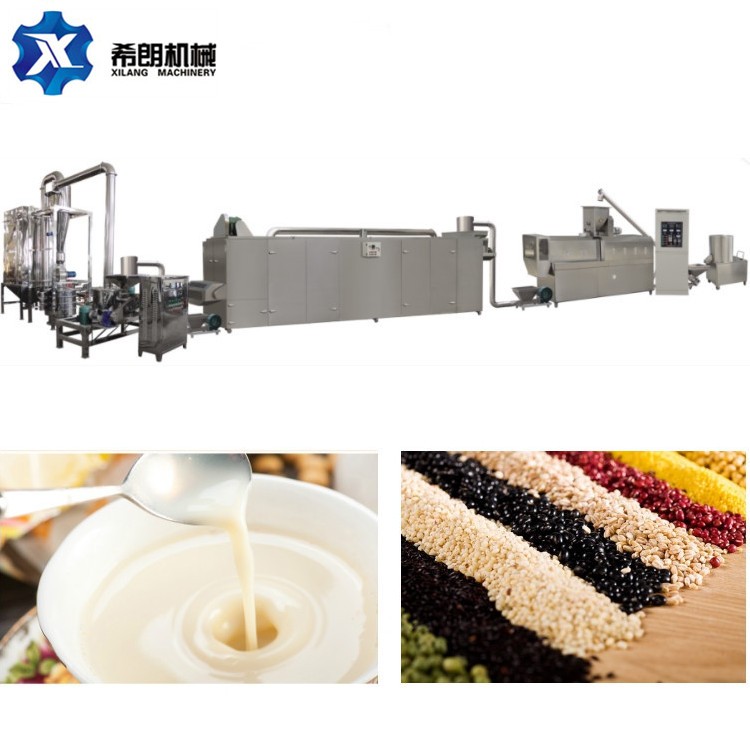 该营养粉生产线从投料开始,工艺流程自动 完成,操作简单,无粉尘泄露,卫生节能。精确的参数控制,更能确保产品的质量稳定。可方便地配以各种原料和 营养物质。